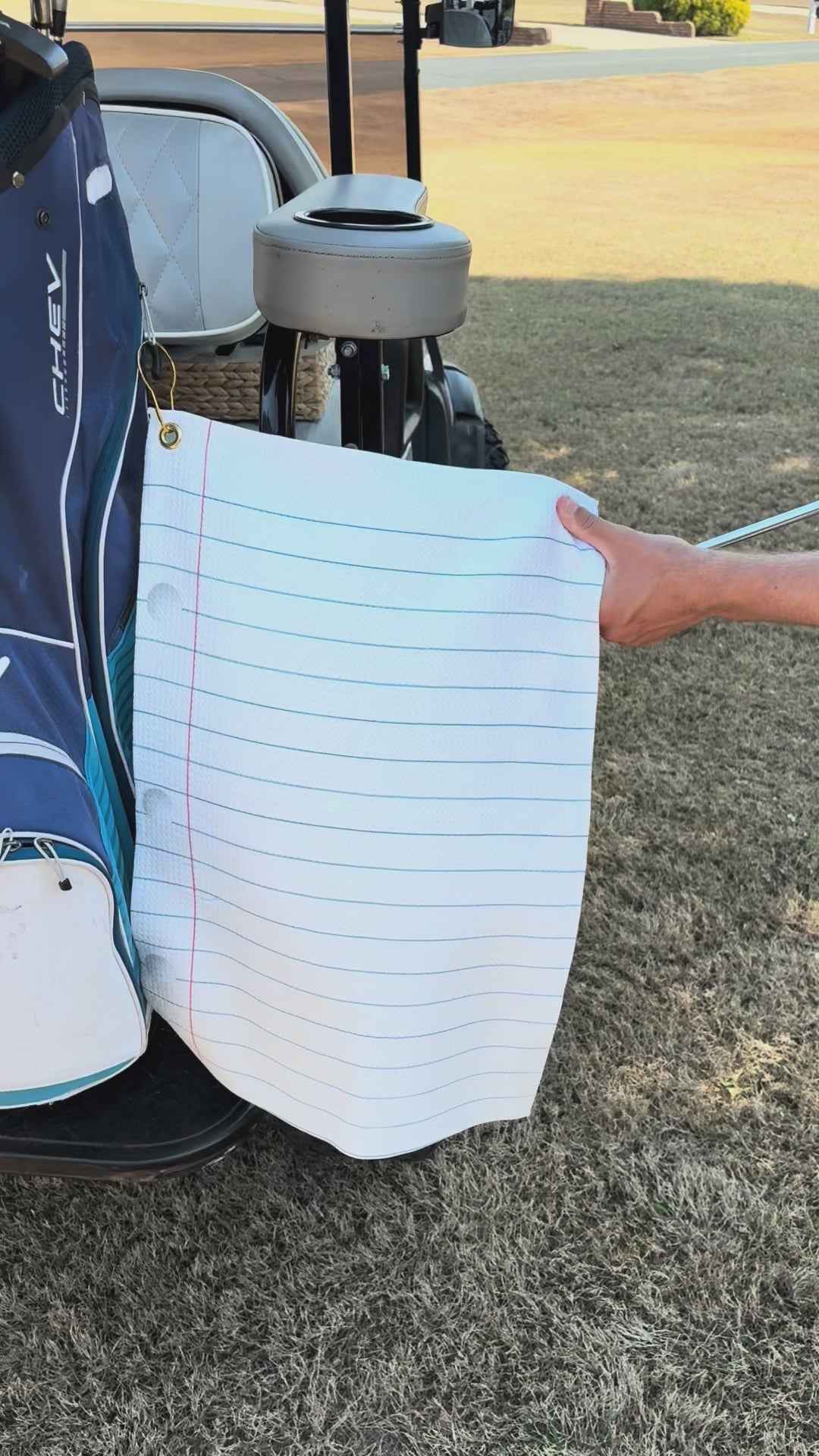This notebook paper golf towel is built for players who like to keep it clean… but not take themselves too seriously. It’s lightweight, clips right onto your bag, and handles dirt, grass, and whatever your last shot just got into.